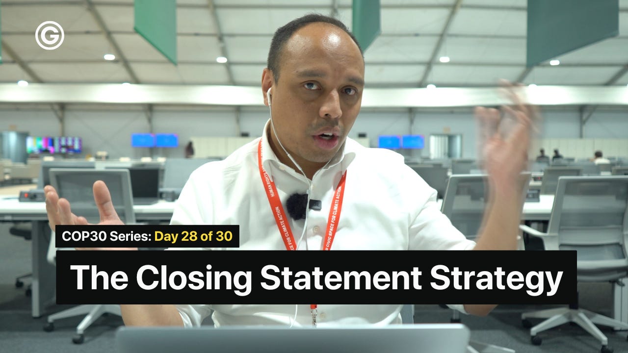 Your closing statement is your last political act at COP. It goes into the official record. It sets the frame for the next negotiation. It signals to allies and adversaries what you will fight for at COP31.